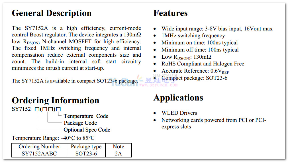 SY7152系列 SOT23封裝 通用型 DC-DC 內(nèi)置2A mos異步升壓IC