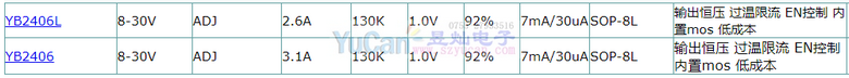 YB2406是支持高電壓輸入的同步降壓電源管理芯片,在8~30V的寬輸入電壓范圍內(nèi)可實(shí)現(xiàn)3.1A的連續(xù)電流輸出。通過調(diào)節(jié)FB端口的分壓電阻,可以輸出1.8V到28V的穩(wěn)定電壓.YB2406具有優(yōu)秀的負(fù)載調(diào)整率和線電壓調(diào)整率,在全范圍內(nèi)不超過±3%。YB2406采用電流模式的環(huán)路控制原理,實(shí)現(xiàn)了快速的動(dòng)態(tài)響應(yīng).YB2406工作開關(guān)頻率為130kH,具有良好的EMI特性。